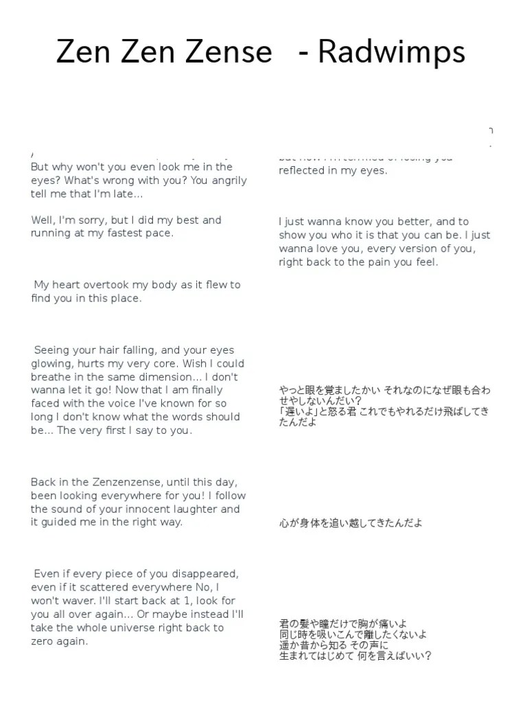 What does zen zen zense mean in japanese. It symbolizes the Absolute enlightenment strength elegance the Universe and the void. Instead of choosing wings to soar through the sky We chose hands to. It was used as one of 4 themes for the 2016 Anime film Your Name Kimi no Na wa the highest-grossing anime film worldwide.